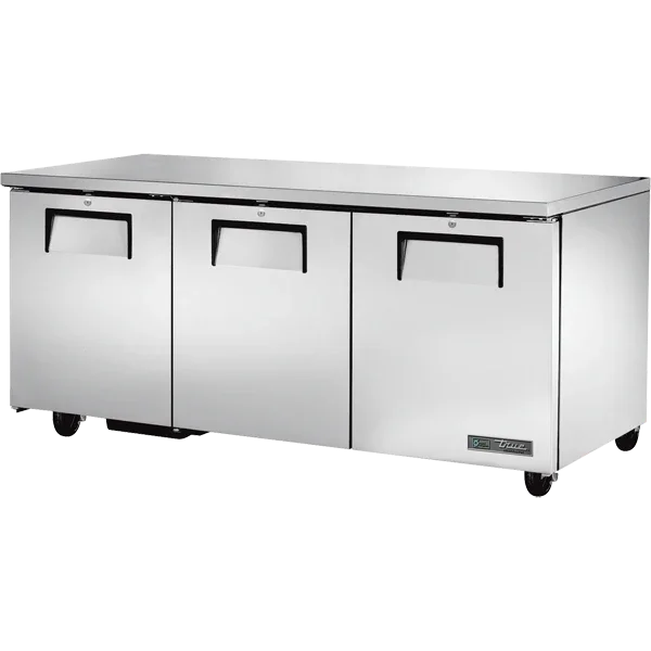 Designed for the demands of professional kitchens, the TRUE 72" 3-Solid Door Undercounter Refrigerator (TUC-72-HC) offers exceptional reliability and performance. Operating at temperatures between 33 and 38 °F, this commercial refrigerator features three durable stainless steel doors that enhance both aesthetics and longevity. With six adjustable PVC-coated wire shelves, it provides flexible storage options to accommodate various food items, keeping your kitchen organized and efficient.